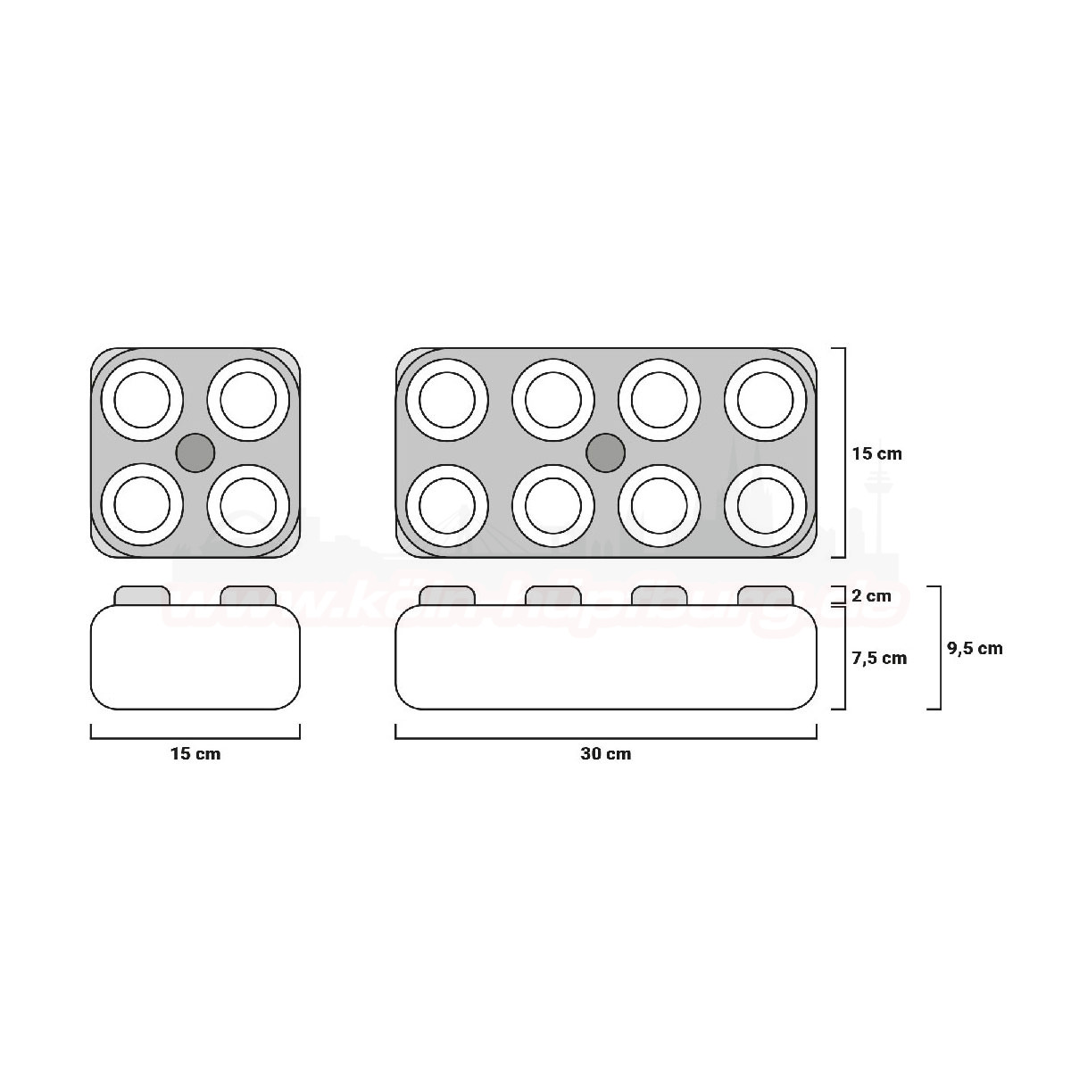 - Abmessung 8-Punkt Spielbaustein (LBH): 30cm x 15cm x 7,5cm (Höhe mit Noppen 9,5cm)