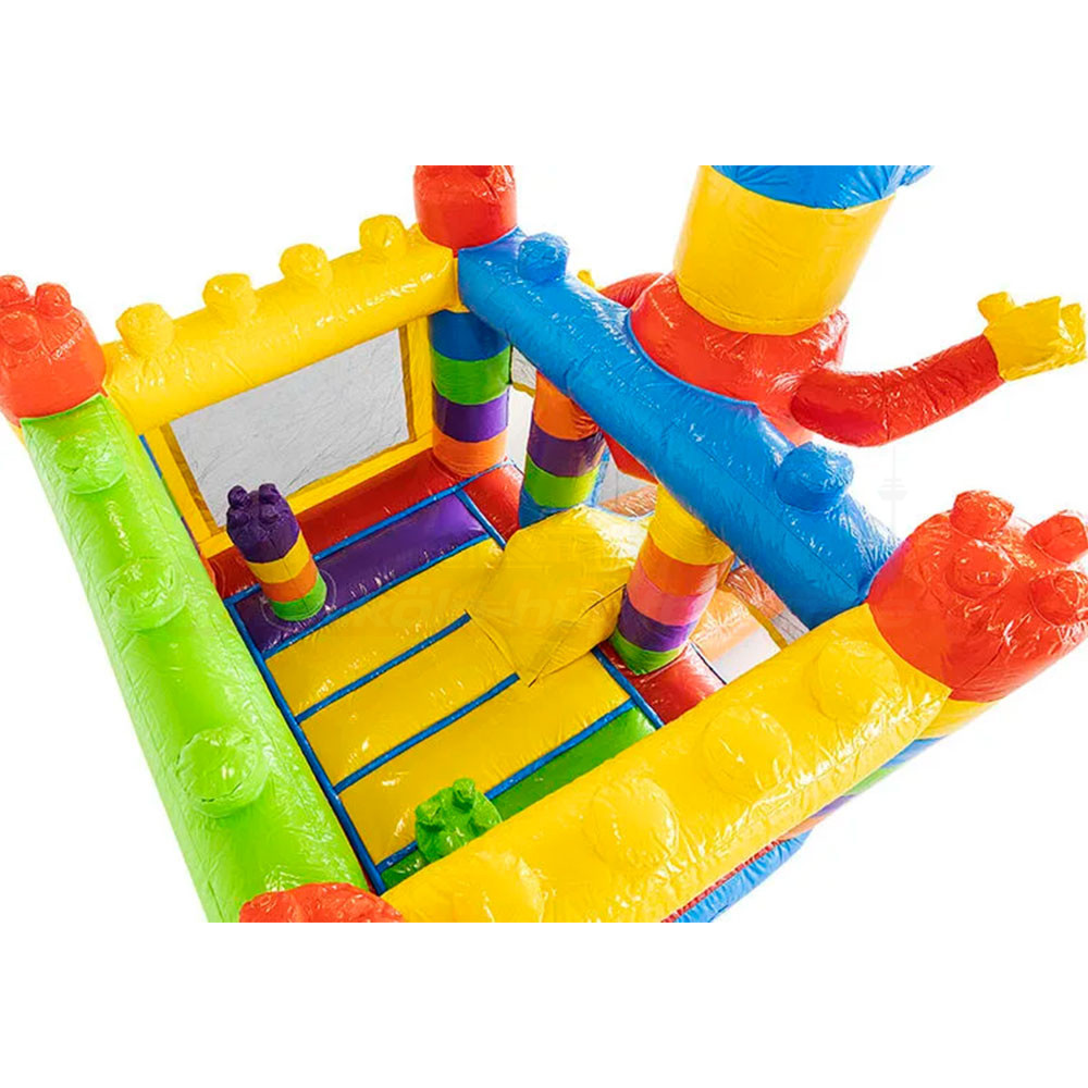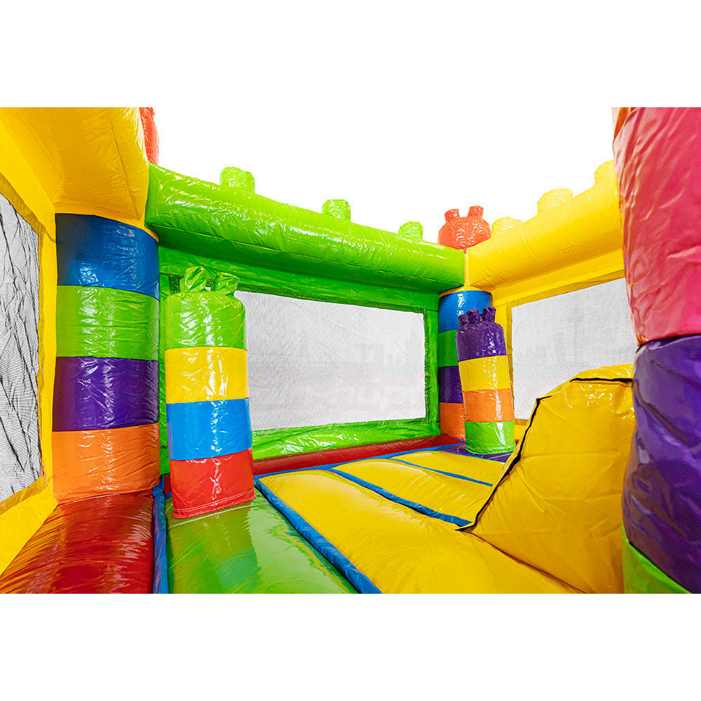 ✔️ Bunte Hüpfburg im Baustein-Design mit Spielfigur