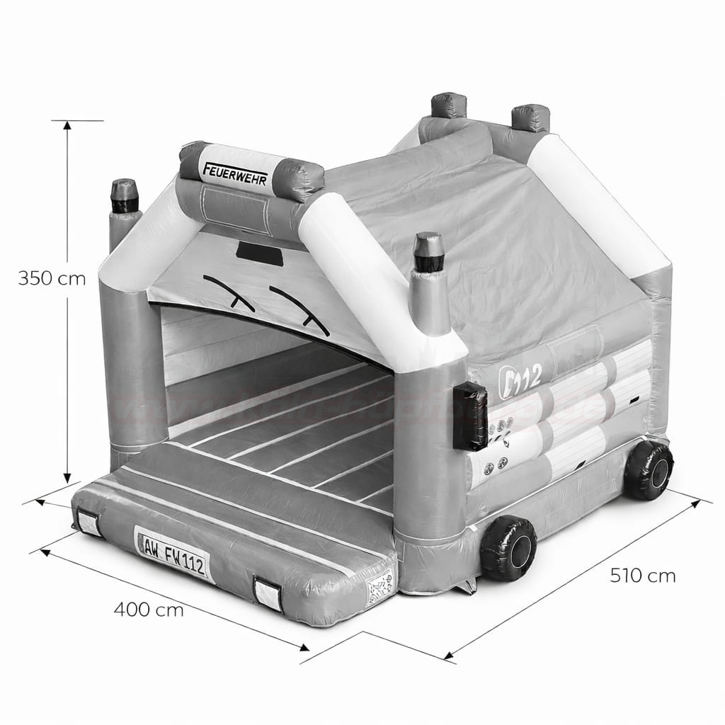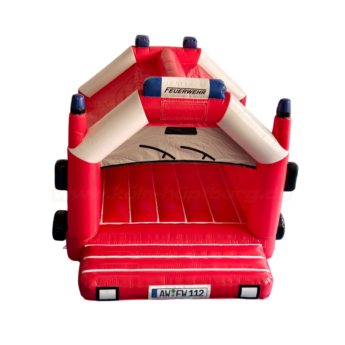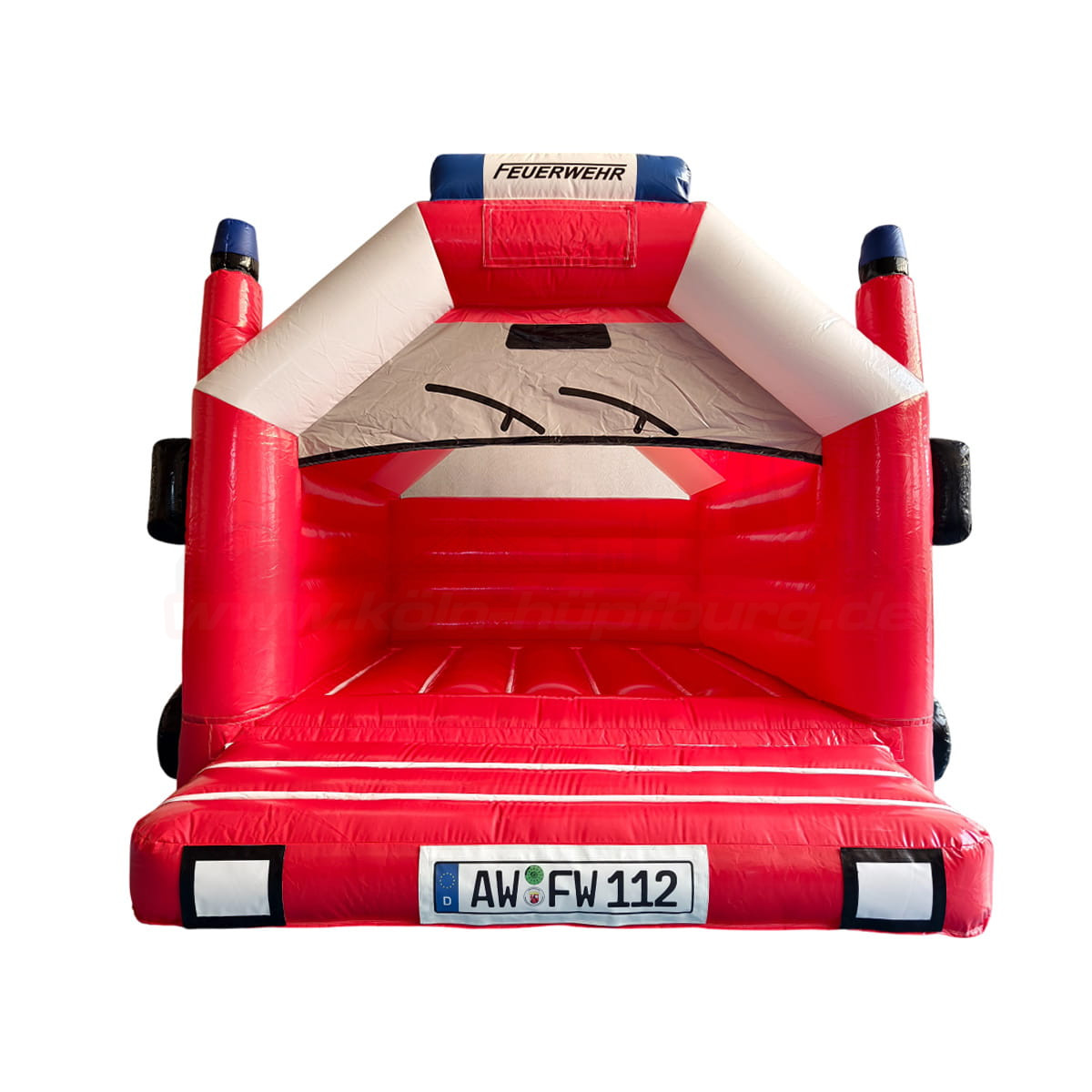 Die offene Front ermöglicht einen einfachen Einstieg, während die stabilen Seitenwände für Sicherheit beim Spielen sorgen. Die Gestaltung mit angedeuteten Blaulichtern, Reifen und Feuerwehrdetails macht das Hüpferlebnis besonders realistisch und regt die Fantasie der Kinder an.