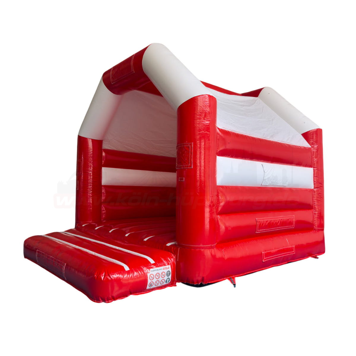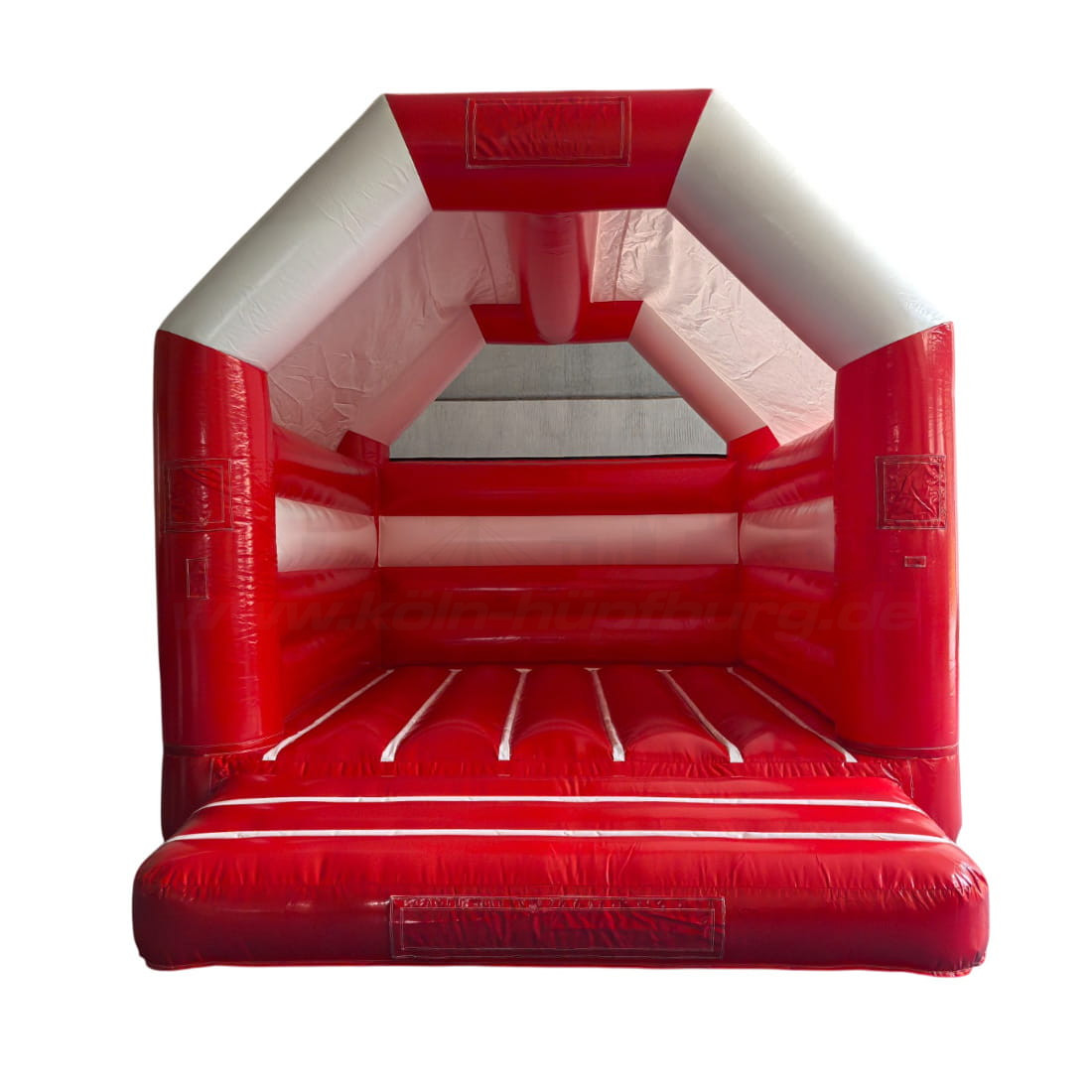 Klassische Hüpfburg in Rot-Weiß mit Dach und sicherem Einstieg – perfekt für Kindergeburtstage und Events in Köln. Einfache Abholung, flexible Wochenendpauschale und maximaler Hüpfspaß garantiert.