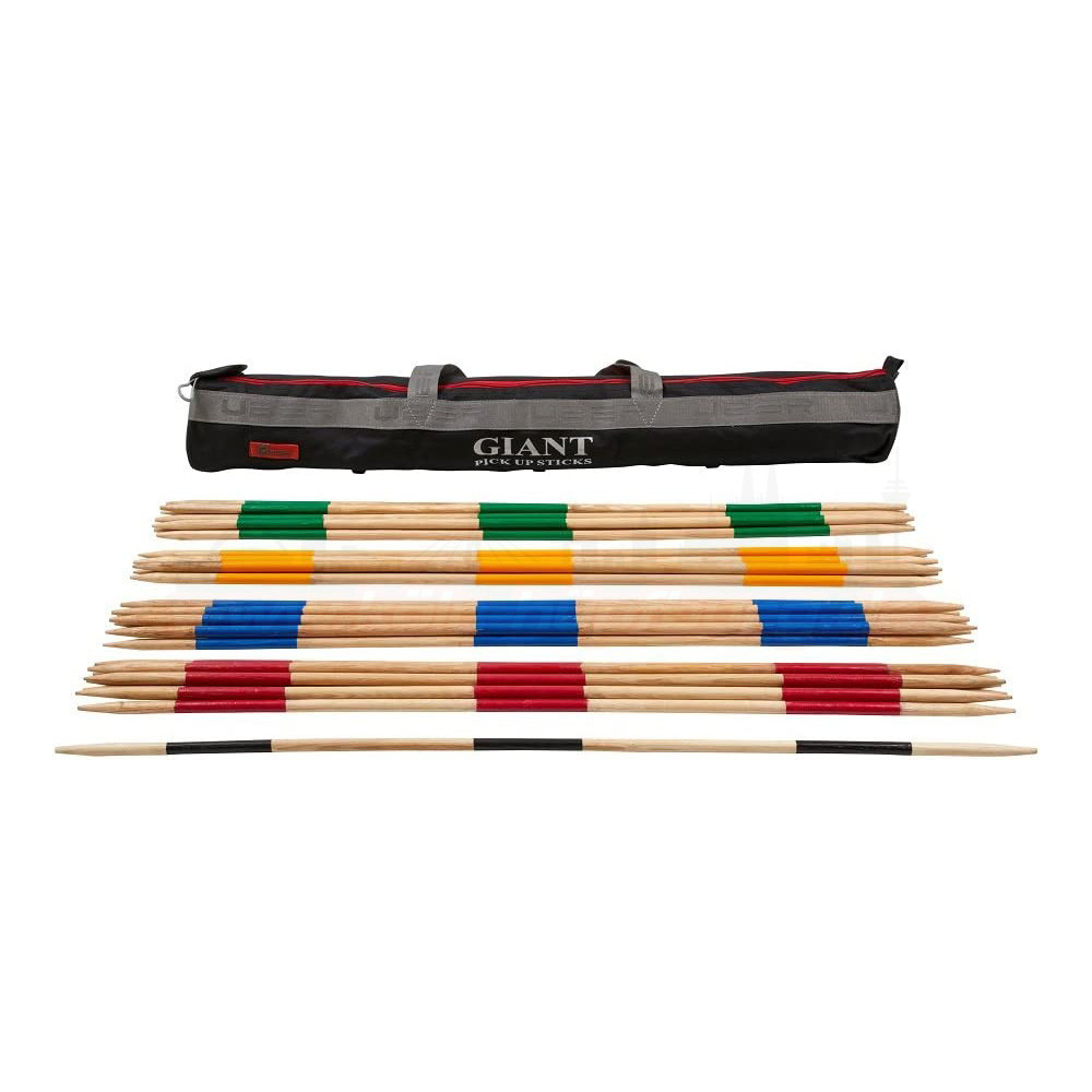 • Die Aufschrift „GIANT PICK UP STICKS“ auf der Tasche – ein echter Hingucker